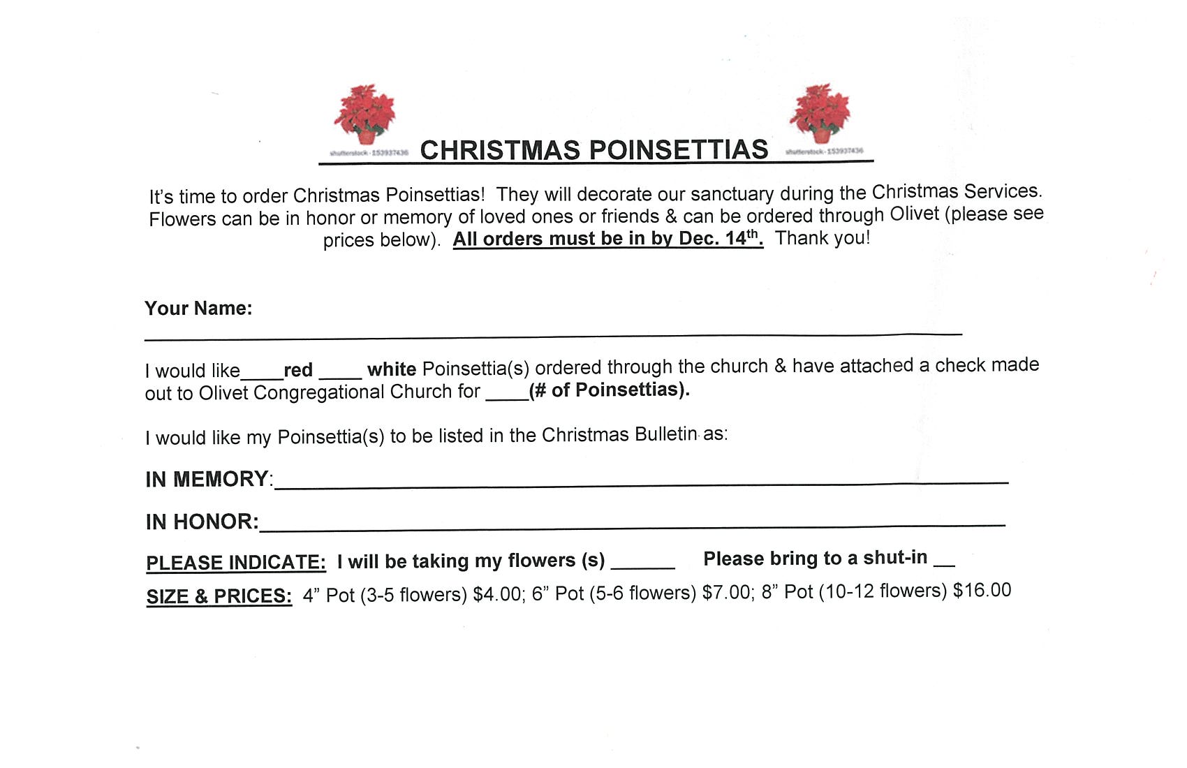 Last call- orders due to the church office by Sunday 12/21. Click on the order form for a printable copy or call the church office 203-333-7259.